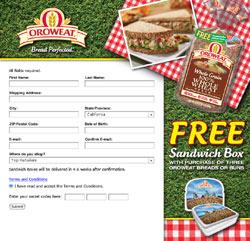 Oroweat Sandwich Box Promotion